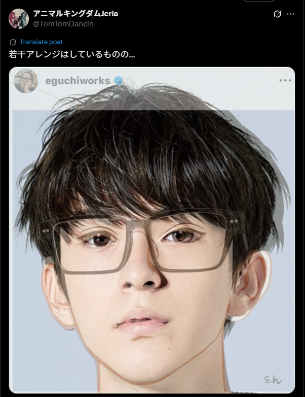 その際に使用された、江口寿史さん描き下ろしのイラスト“理想のメガネ男子・メガネ女子”が、トレースなのは?と疑われる事態になっています。
