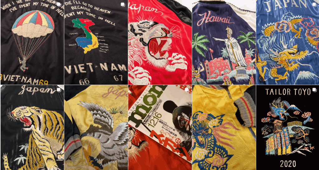 その昔、日本の米軍基地に駐留していたアメリカ兵が、帰国時の記念品として、日本製のフライトジャケットに鷲、虎、龍などのオリエンタルな刺繍を施してもらったのが始まりと言われています。
