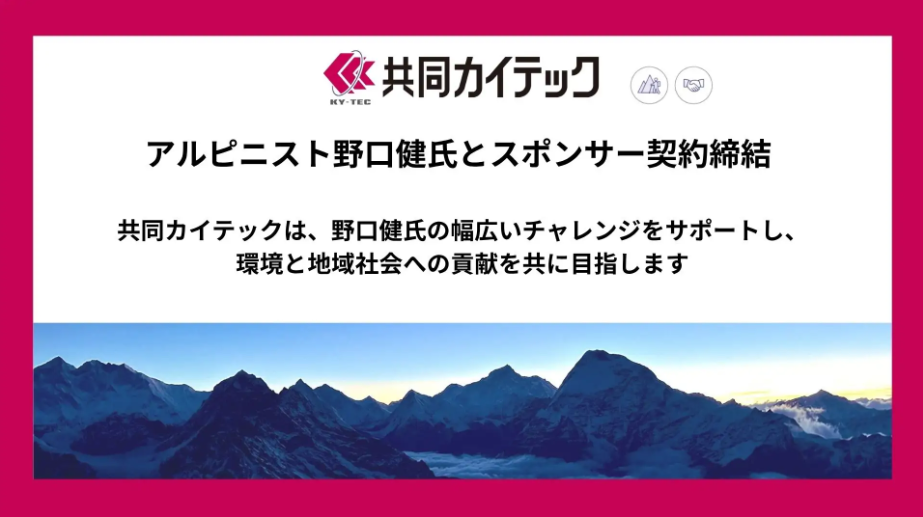 共同カイテック株式会社…遠征活動資金支援、環境保全イベント協賛、講演機会提供