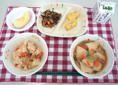 青森県内の小中学校では、八戸地方の郷土料理「せんべい汁」が