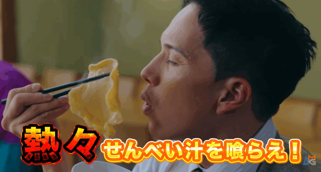 お汁のしみ込んだ熱々を頬張った甘利田先生が、