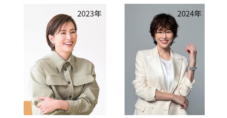 40代に入り、ファッション誌の仕事やハイブランドのアンバサダーとしても定着し、ファッションモデルを意識したようなボディーに。ファッション業界では“衣装を着た状態がベスト”になるよう、ボディーは「細い」より「かなり細い」が良いとされているようです。痩せ過ぎなのか、ただ単に加齢という不可抗力なのか…